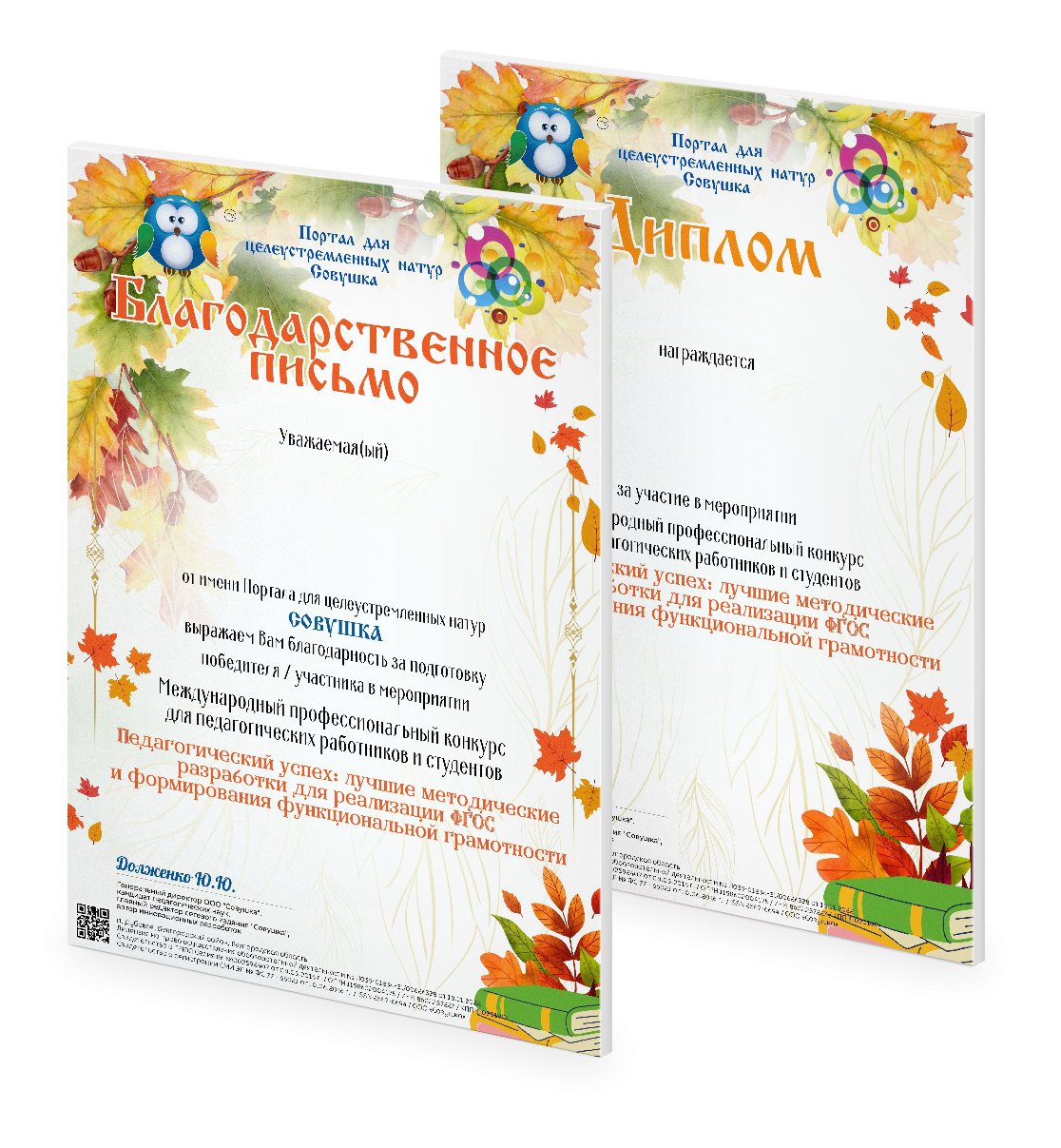 Международный конкурс «Педагогический успех» направлен на выявление, поддержку и распространение лучших методических идей педагогов, работающих в системе образования. Участникам предоставляется возможность представить собственные разработки − конспекты уроков, методические программы, сценарии мероприятий и другие авторские материалы, направленные на реализацию требований ФГОС и формирование функциональной грамотности обучающихся.
