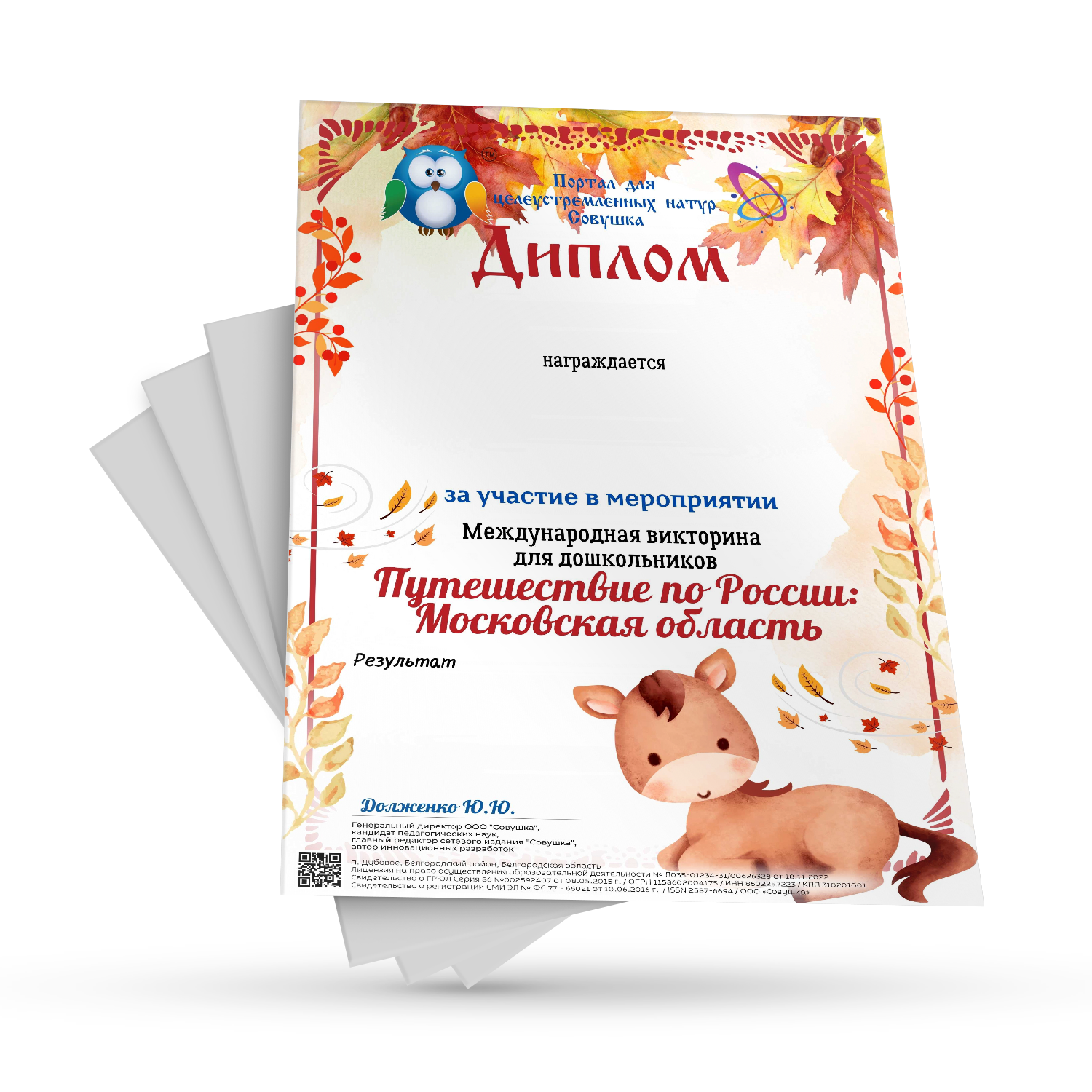 !!! Наградной документ куратору НЕ выдается.